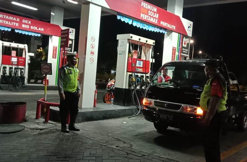 Seputarperak.com- Patroli dilakukan personil Polsek Pabean Cantikan, Polres Pelabuhan Tanjung Perak di SPBU Jalan Stasiun Kota, Rabu malam, 16 September 2020.