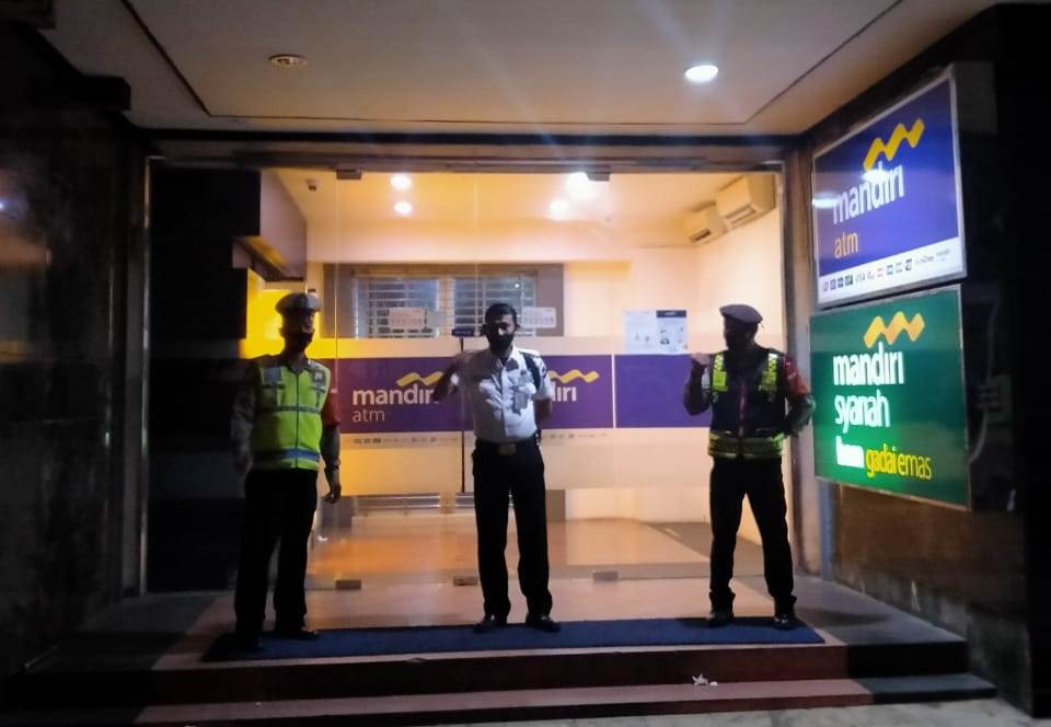 Seputarperak.com- Patroli dilakukan personil Polsek Pabean Cantikan, Polres Pelabuhan Tanjung Perak di kantor Bank Mandiri, Jalan Kembang Jepun, Kamis malam, 17 September 2020.