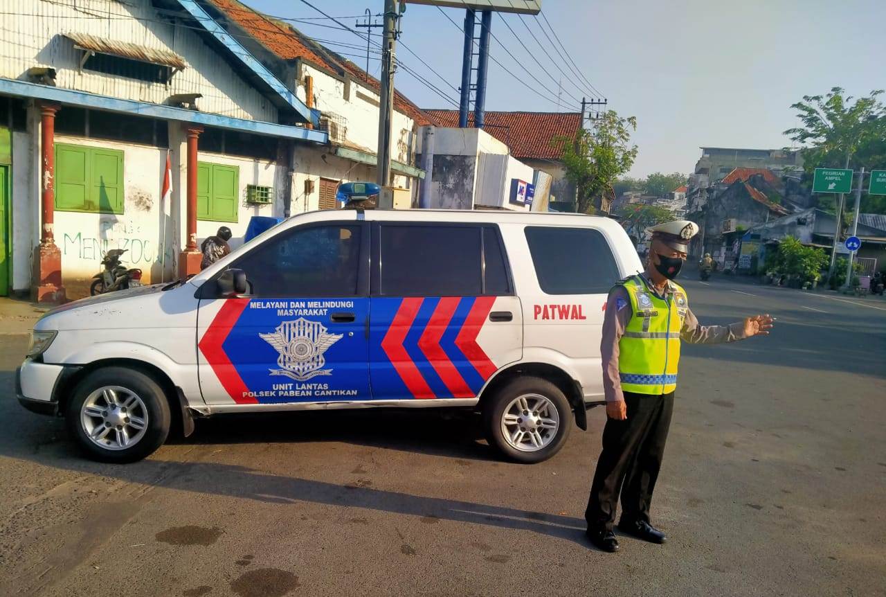 Seputarperak.com- Pengaturan lalu lintas pagi dilakukan personil Unit Lantas Polsek Pabean Cantikan, Polres Pelabuhan Tanjung Perak di seputaran Jalan Bunguran, Jumat pagi, 18 September 2020.