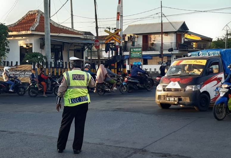 Seputarperak.com- Pengaturan lalu lintas sore dilakukan personil Unit Lantas Polsek Asemrowo, Polres Pelabuhan Tanjung Perak di seputaran Jalan Tambak Mayor rel kereta api, Jumat, 18 September 2020.