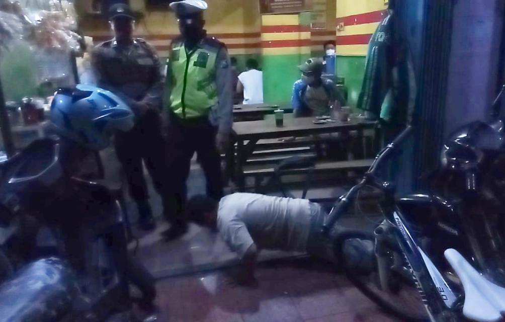 Saat itu ditemukan sebanyak 12 orang pengunjung Warkop yang tidak memakai masker. Mereka dijatuhi sanksi fisik berupa push up masing-masing sebanyak 10 kali.