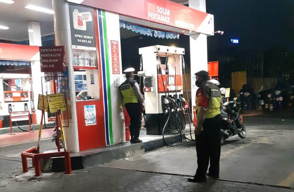 Seputarperak.com- Patroli malam dilaksankaan personil Polsek Pabean Cantikan, Polres Pelabuhan Tanjung Perak di SPBU Jalan Stasiun Kota, Kamis, 1 Oktober 2020.