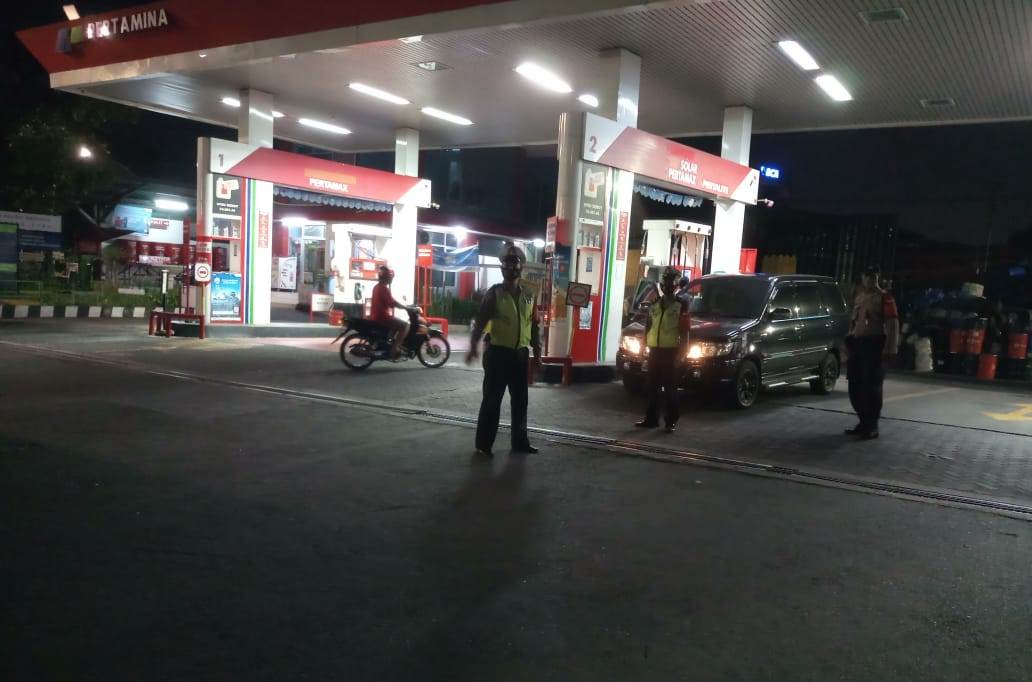 Seputarperak.com- Patroli dilakukan personil Polsek Pabean Cantikan, Polres Pelabuhan Tanjung perak di SPBU Jalan Stasiun Kota, Jumat malam, 2 Oktober 2020.