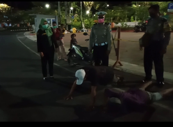 Saat itu 8 orang diamankan karena tidak menggunakan masker. Masing-masing 4 diantaranya dijatuhi sanksi push up, 2 orang dijatuhi sanksi skotjam, 2 orang melafalkan teks Pancasila.