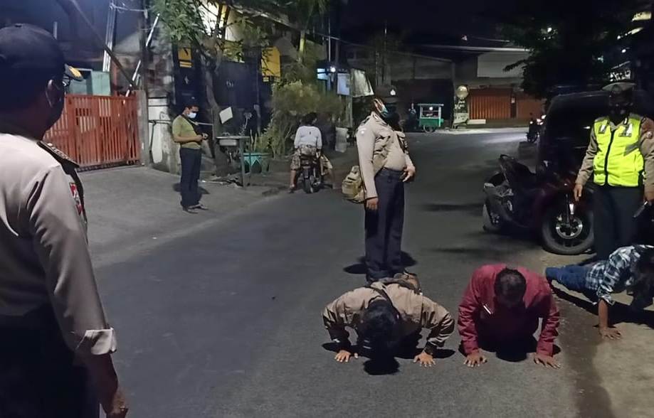 Saat itu ditemukan sebanyak 15 orang yang tidak menggunakan masker. Dimana 3 diantaranya dilakukan penyitaan KTP dan 12 orang lainnya diberikan sanksi sosial dan sanksi fisik berupa push up.