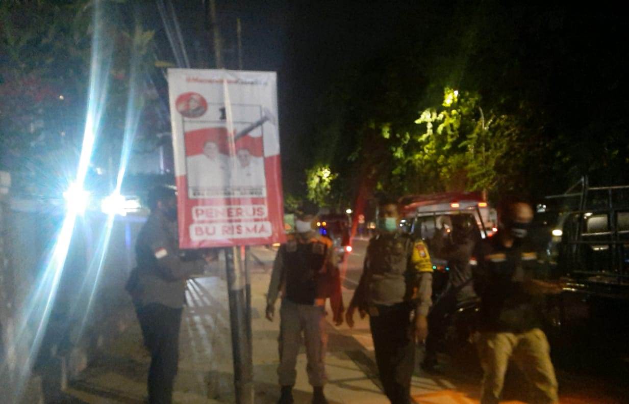 Seputarperak.com- Personil Polsek Pabean Cantikan, Polres Pelabuhan Tanjung Perak melakukan pengawalan penertiban alat peraga kampanye (APK) di Jalan Perak Timur, Rabu malam, 7 Oktober 2020.