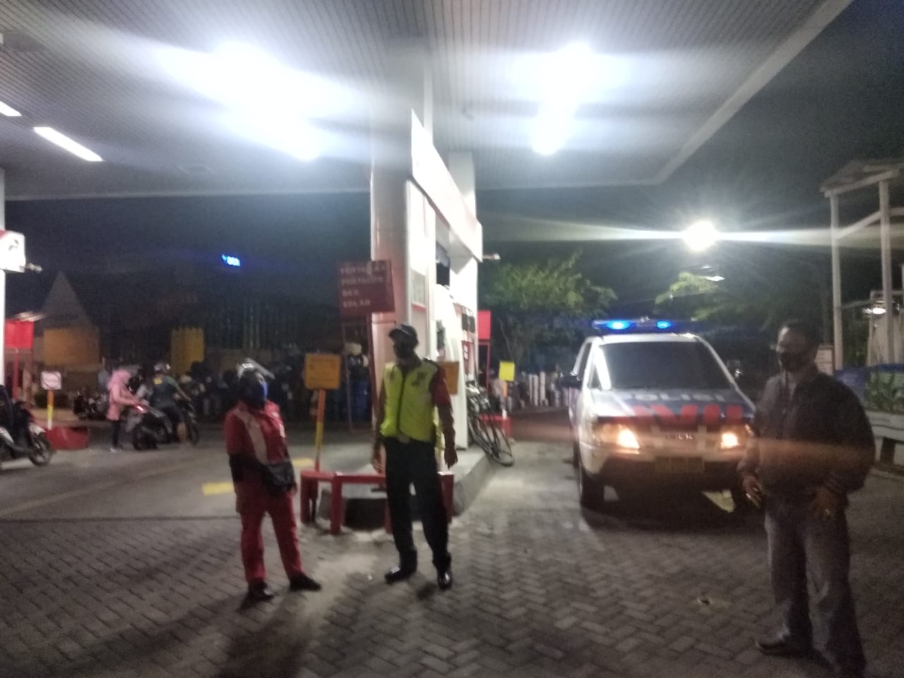 Seputarperak.com- Patroli dilakukan personil Unit Lantas dan Unit Sabhara Polsek Pabean Cantikan, Polres Pelabuhan Tanjung Perak di SPBU Jalan Stasiun Kota, Senin malam, 12 Oktober 2020.