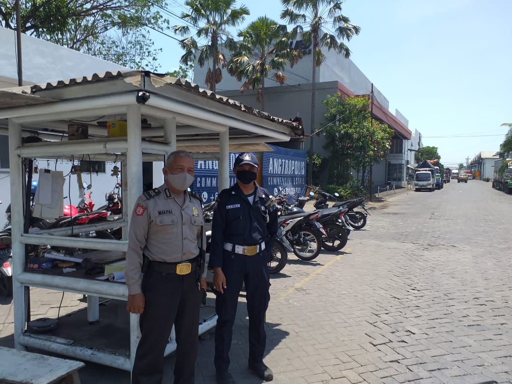 Seputarperak.com- Patroli dialogis dilakukan personil Polsek Asemrowo, Polres Pelabuhan Tanjung Perak di komplek Pergudangan Surimulia, Jalan Margomulyo, Rabu pagi, 14 Oktober 2020.