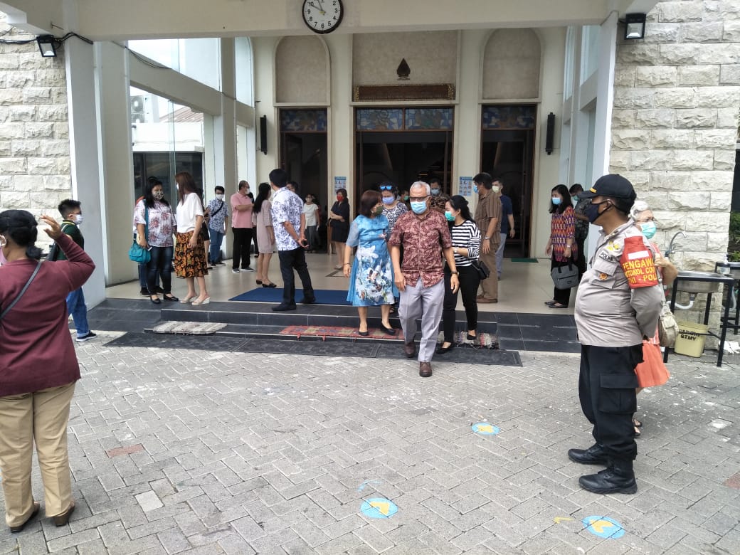 Kebaktian ini dipimpin oleh Pendeta Romo Sandi dimana protokol kesehatan tetap diterapkan oleh pihak gereja. Termasuk mewajibkan penggunaan masker dan jaga jarak.