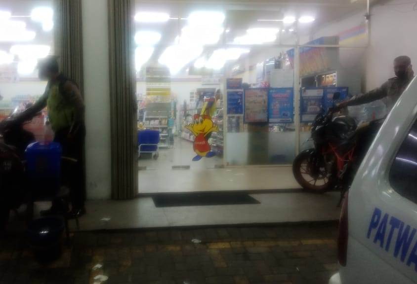 Seputarperak.com- Patroli malam dilakukan personil Polsek Asemrowo, Polres Pelabuhan Tanjung Perak di mini market Indomart, Jalan Tambak Langon, Rabu, 4 Nopember 2020.
