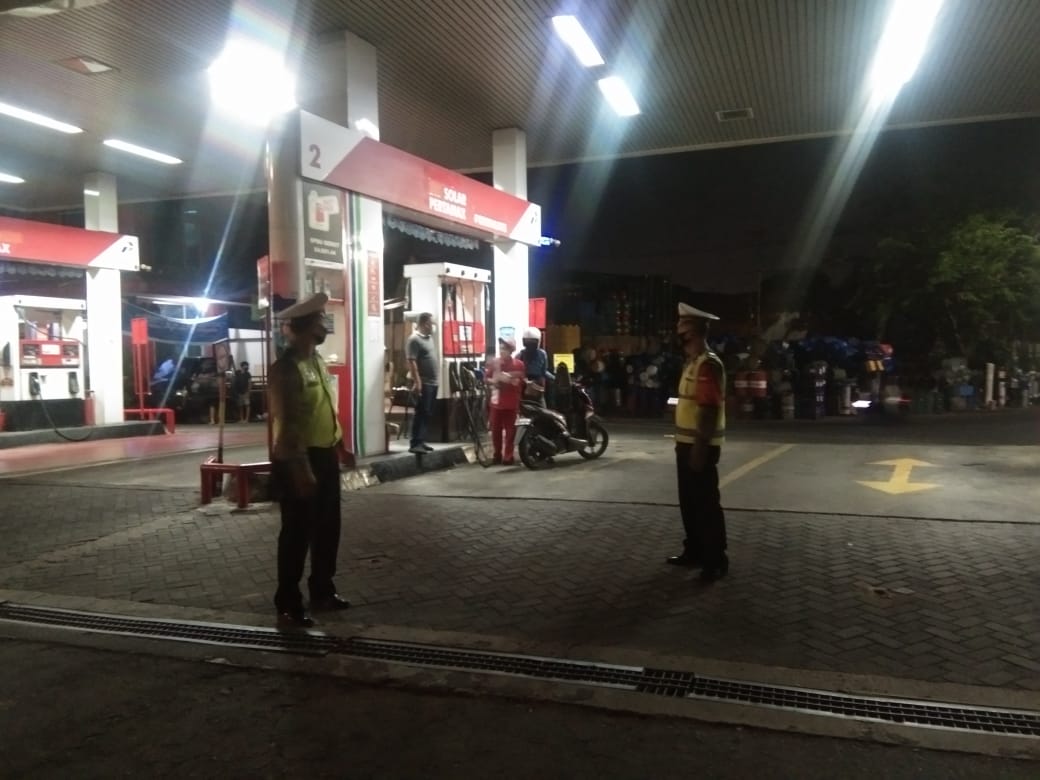 Seputarperak.com- Patroli dilakukan personil Polsek Pabean Cantikan, Polres Pelabuhan Tanjung Perak di SPBU Jalan Stasiun Kota, Sabtu malam, 7 Nopember 2020.