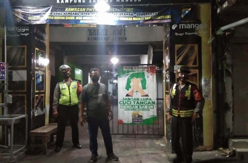 Seputarperak.com- Patroli dilakukan personil Polsek Pabean Cantikan, Polres Pelabuhan Tanjung Perak di Kampung Tangguh Semeru (KTS) RW 01 Kelurahan Bongkaran, Selasa malam, 10 Nopember 2020.