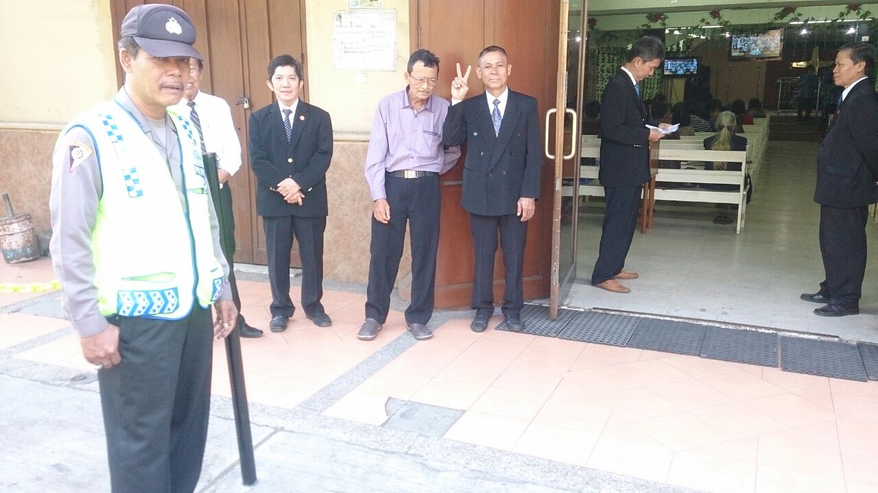 Saat itu kepada petugas gereja, Aiptu M Mulyo menyampaikan pesan-pesan kamtibmas. Dia meminta agar petugas gereja waspada menghadapi orang-orang yang tidak dikenal, yang berusaha masuk.