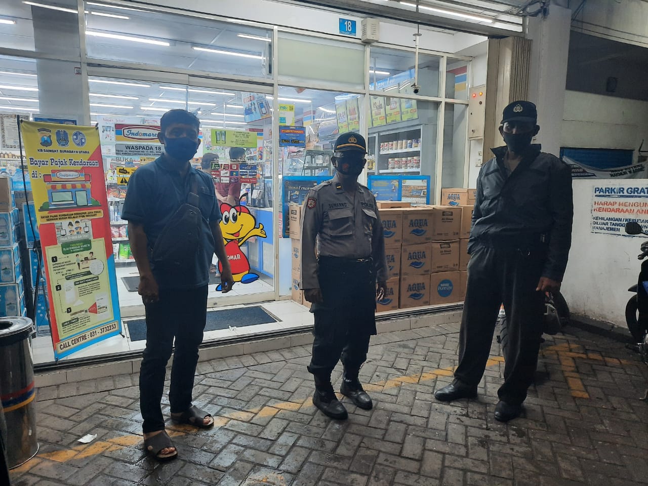 Seputarperak.com- Kegiatan patroli malam dilakukan personil Polsek Pabean Cantikan, Polres Pelabuhan Tanjung Perak di mini market Indomart, Jalan Waspada, Sabtu, 5 Desember 2020.