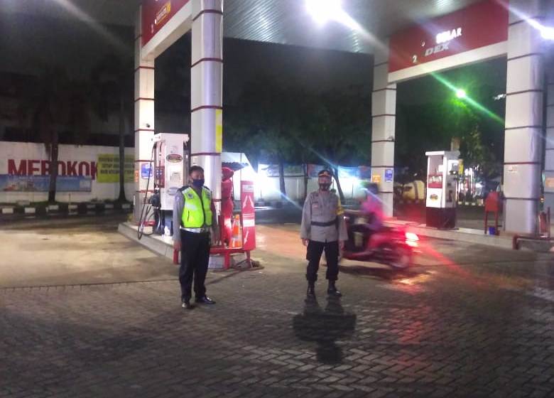 Seputarperak.com- Patroli malam dilakuka personil Polsek Semampir, Polres Pelabuhan Tanjung Perak di SPBU Jalan Sultan Iskandar Muda, Jumat, 11 Desember 2020.