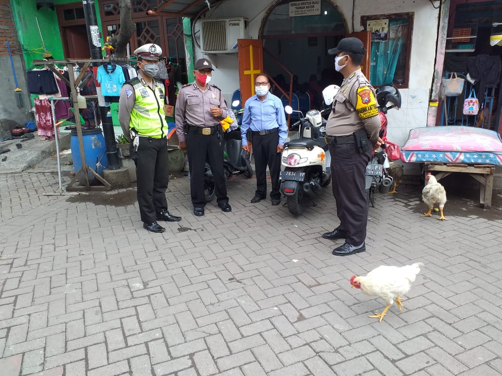 Seputarperak.com- Pengamanan kebaktian dilakukan personil Polsek Asemrowo, Polres Pelabuhan Tanjung Perak di Gereja Kristus Injil (GKI) Siloam, Jalan Simorejosari, Minggu pagi, 13 Desember 2020.