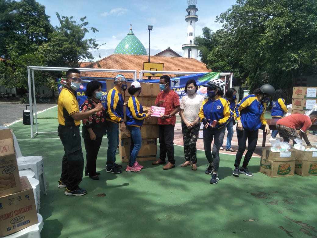 Seputarperak.com- Panit Binmas Polsek Krembangan, Polre Pelabuhan Tanjung Perak, Ipda Eko Mustaghfirin menghadiri kegiatan bakti sosial yang digelar Lions Club Surabaya Edelweis di halaman SDK Santo Mikael Jalan Tanjung Sadari, Sabtu pagi, 19 Desember 2020.