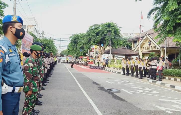Seputarperak.com- Apel gelar pasukan dalam rangka pelaksanaan Operasi Lilin Semeru dilaksanakan di depan Mapolres Pelabuhan Tanjung Perak, Jalan Kalianget, Senin pagi, 21 Desember 2020.