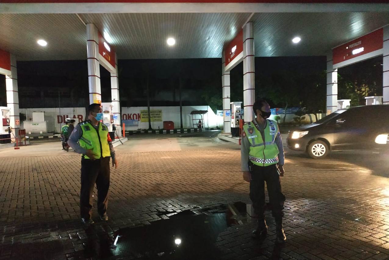 Seputarperak.com- Kegiatan patroli dilakukan personil Polsek Semampir di SPBU Jalan Danakarya, Selasa malam, 22 Desember 2020.