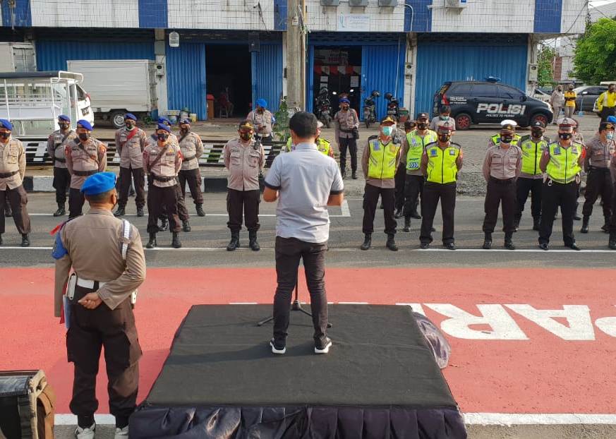 Seputarperak.com- Apel pengamanan malam tahun baru digelar di depan Mapolres Pelabuhan Tanjung Perak, Kamis sore, 31 Desember 2020.