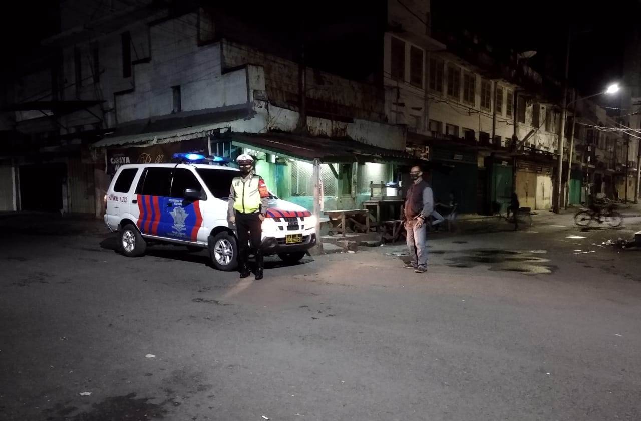 Seputarperak.com- Patroli mobile dilakukan personil Polsek Pabean Cantikan, Polres Pelabuhan Tanjung Perak di Jalan Kembang Jepun dan Jalan Slompretan, Jumat malam, 1 Januari 2021.