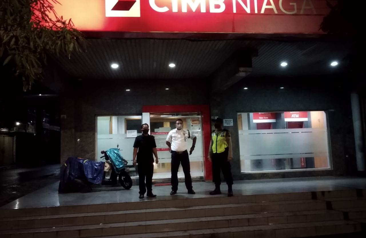 Seputarperak.com- Patroli dilakukan personil Polsek Pabean Cantikan di kantor Bank CIMB Niaga, Jalan Kembang Jepun, Kamis malam, 7 Januari 2021.