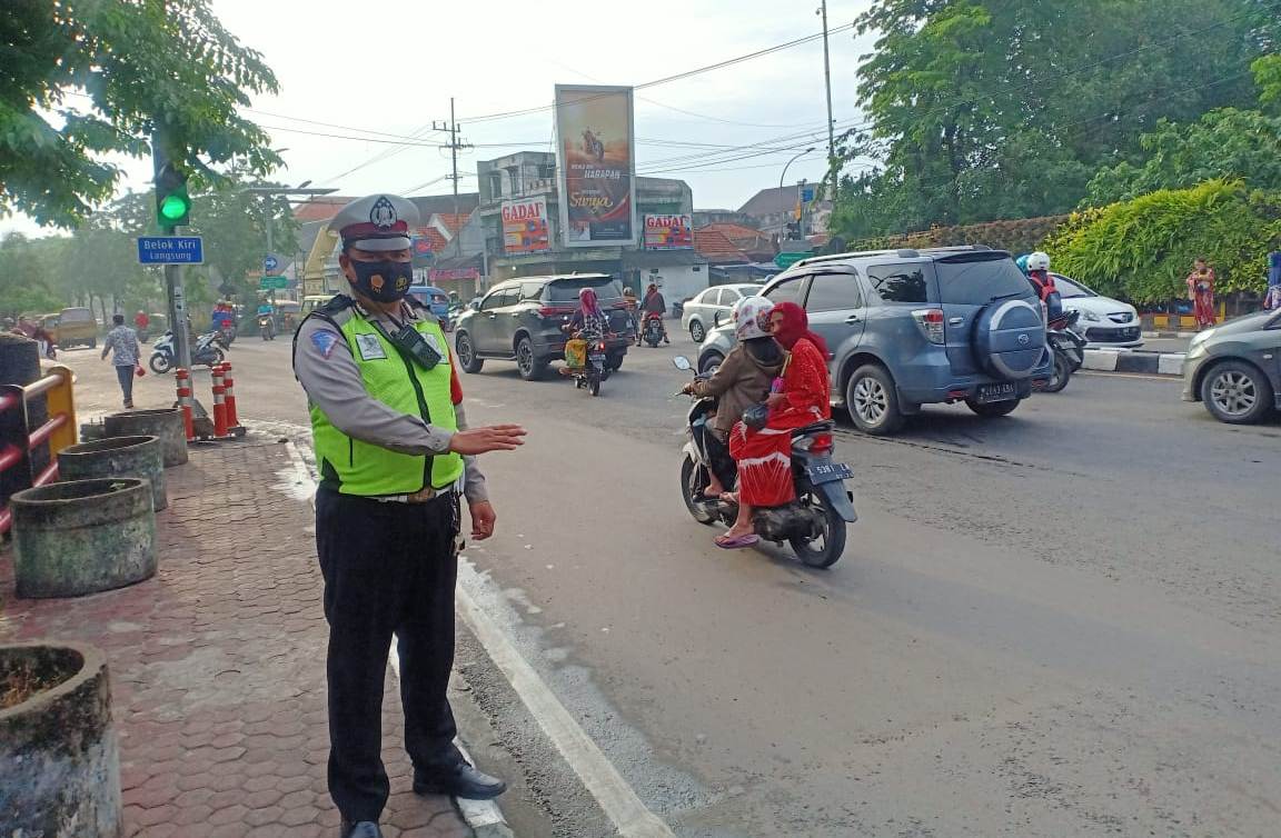 Seputarperak.com- Pengaturan lalu lintas pagi dilakukan personil Unit Lantas Polsek Semampir, Polres Pelabuhan Tanjung Perak di seputaran Jalan Karang Tembok, Jumat pagi, 8 Januari 2021.