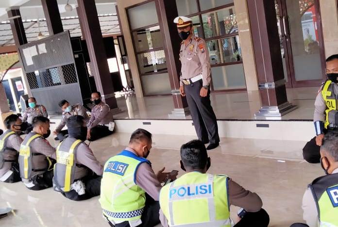 Seputarperak.com- Kasat Lantas Polres Pelabuhan Tanjung Perak, AKP Sigit Indra memberikan pemahaman tentang fungsi dan pengoperasian aplikasi E-Turjawali kepada para personil, Senin pagi, 11 Januari 2021.