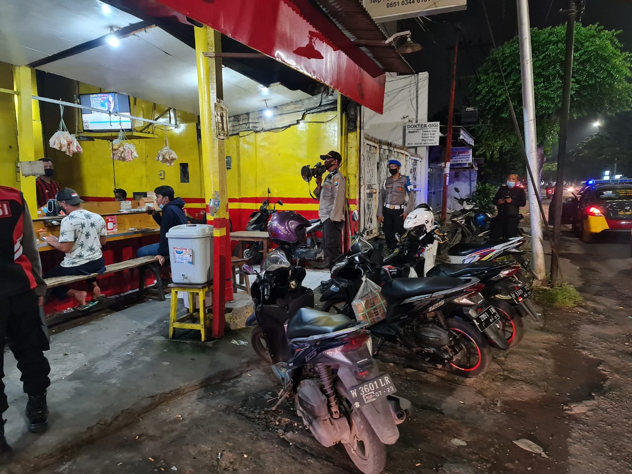 Disampig itu beberapa kali personil patroli skala besar berhenti untuk memberikan himbauan kepada pemilik warung-warung agar segera tutup karena sudah melewati aturan jam malam dalam penerapan PPKM.