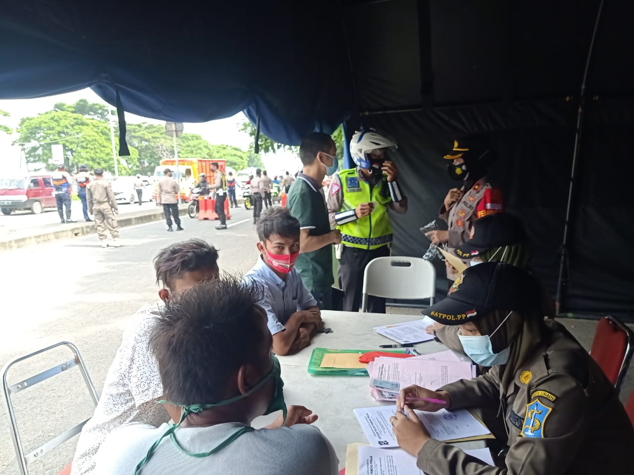 Masing-masing 14 orang diantaranya dijatuhi sanksi penyitaan KTP dan denda. Sementara 12 orang lainnya diperintahkan putar balik dan tidak diijinkan melanjutkan perjalanan.