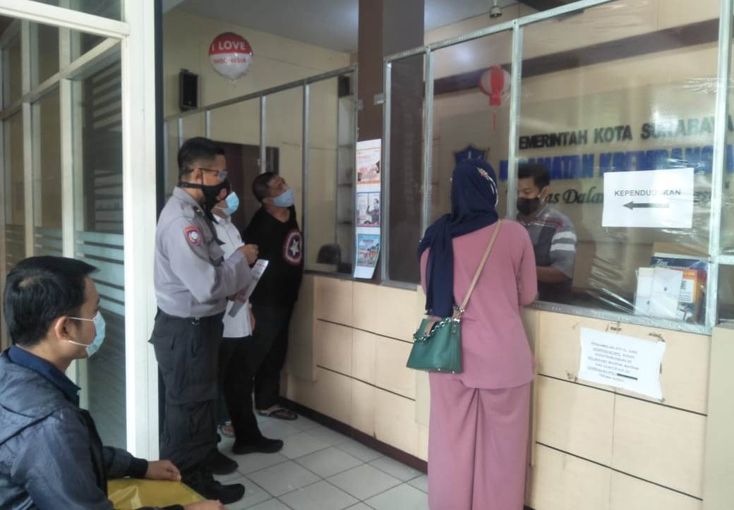 Seperti yang dilakukan Ipda Eko Mustaghfirin, Panit Binmas Polsek Krembangan di kantor Kecamatan Krembangan, Rabu siang, 13 Januari 2021.