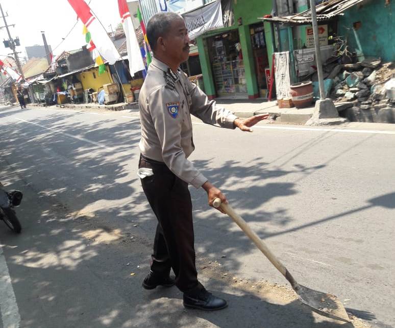 Untuk menghindari jatuhnya korban kecelakaan lagi, Aiptu Chofin langsung melakukan penimbunan tumpahan olie tersebut dengan pasir yang diambil dari tepi jalan.