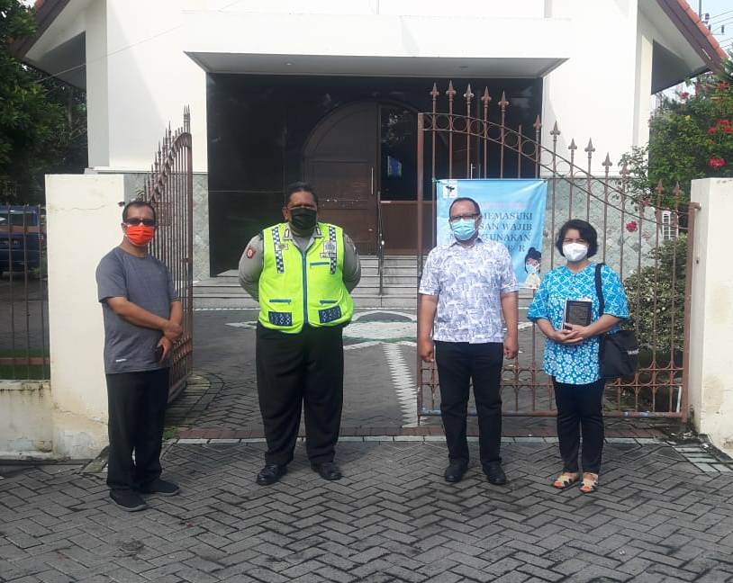 Pelaksanaan ibadah ini tetap menerapkan protokol kesehatan, termasuk wajib maker bagi semua jemaat dan jaga jarak tempat duduk.