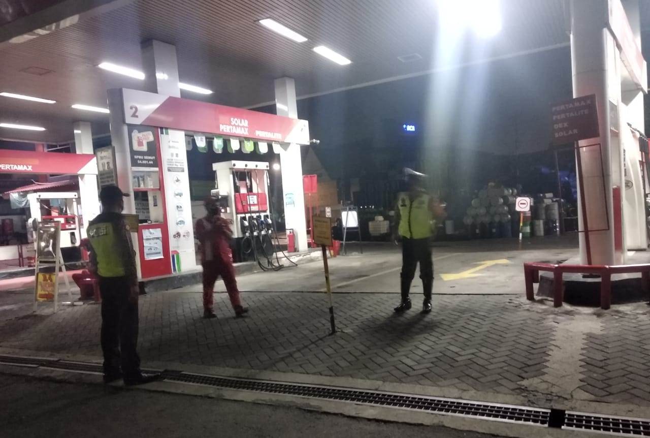 Seputarperak.com- Patroli dilakukan personil Polsek Pabean Cantikan, Polres Pelabuhan Tanjung Perak di SPBU Jalan Stasiun Kota, Senin malam, 25 Januari 2021.