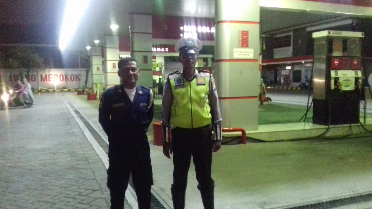 Salah satunya yang terlihat di SPBU Jalan Tanjung Sadari, dimana personil Unit Lantas sedang melakukan pemantauan di sekeliling tempat itu.