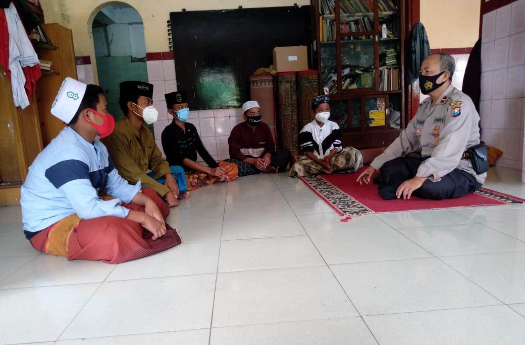 Seputarperak.com- Himbauan patuh protokol kesehatan disampaikan Ipda Munir, Panit Binmas Polsek Semampir, Polres Pelabuhan Tanjung Perak kepada santri Pondok Pesantren (Ponpes) Fatchus Salam, Jalan Petukangan.