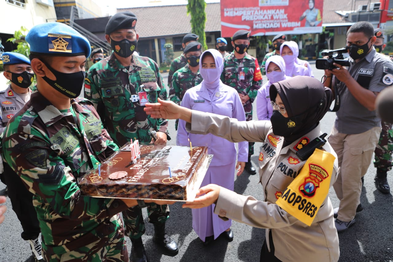 Namun bagi Kapolres hal ini merupakan kejutan yang menyenangkan. Dia menerima langsung kue tart dari Komandan Pusdiklat Hanudnas.