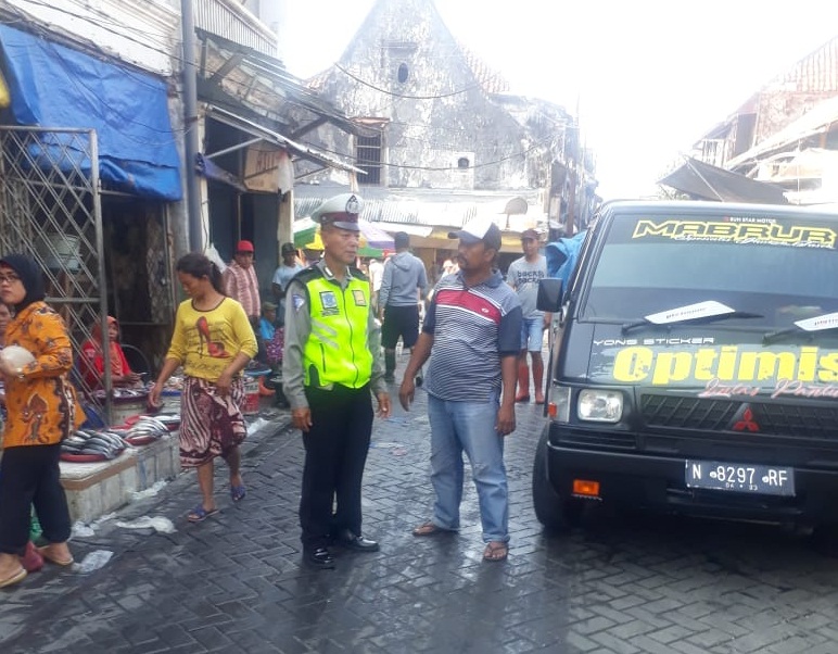 Seputarperak.com- Untuk mencegah kemacetan di pasar ikan Jalan Panggung, Unit Lantas Polsek Pabean Cantikan, Polres Pelabuhan Tanjung Perak menggelar pengaturan rutin setiap hari.