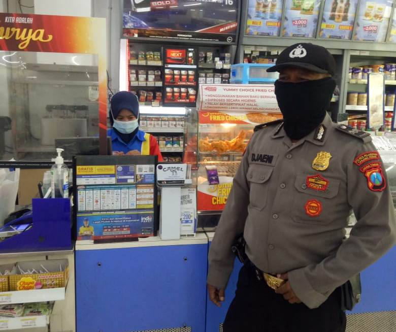 Disamping mengawasi situasi sekeliling, personil Polsek Asemrowo juga menyampaikan pesan-pesan keamanan kepada para pekerja mini market.