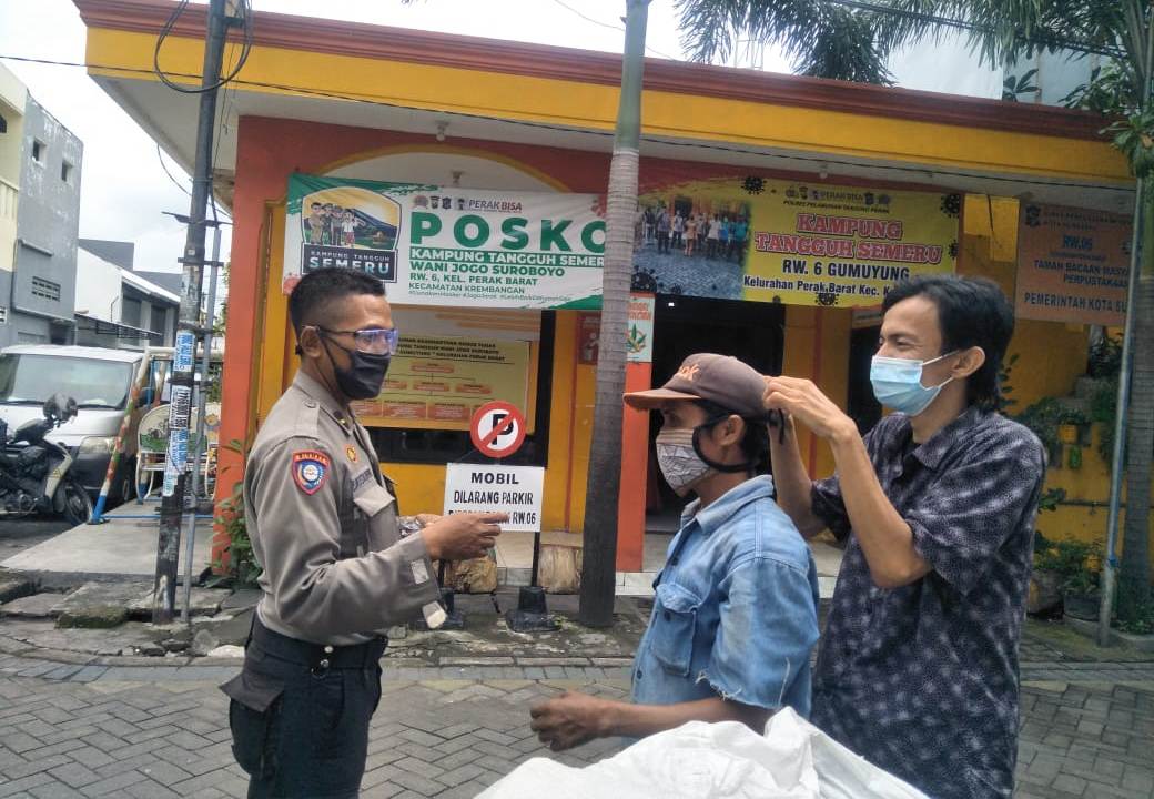 Salah satunya seperti yang dilakukan Ipda Eko Mustaghfirin, Panit Binmas Polsek Krembangan bersama anggota tim relawan Kampung Tangguh Semeru (KTS) RW 06 Kelurahan Perak Barat, Bapak Hendara, Kamis pagi, 4 Pebruari 2021.