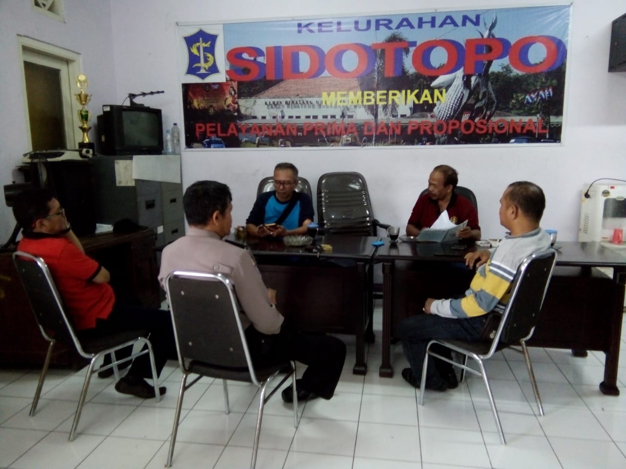 Disana dia ditemui kepala Kelurahan Sidotopo, beserta sekretaris kelurahan dan Kasi Pemerintahan.