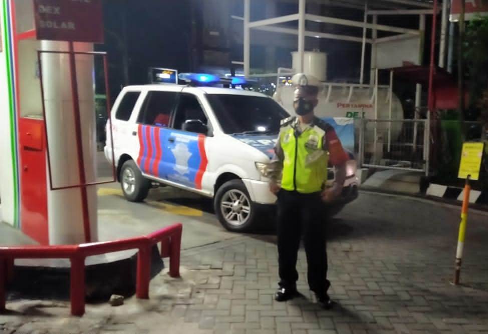 Seputarperak.com- Patroli dilakukan personil Polsek Pabean Cantikan, Polres Pelabuhan Tanjung Perak di SPBU Jalan Stasiun Kota, Jumat malam, 5 Pebruari 2021.