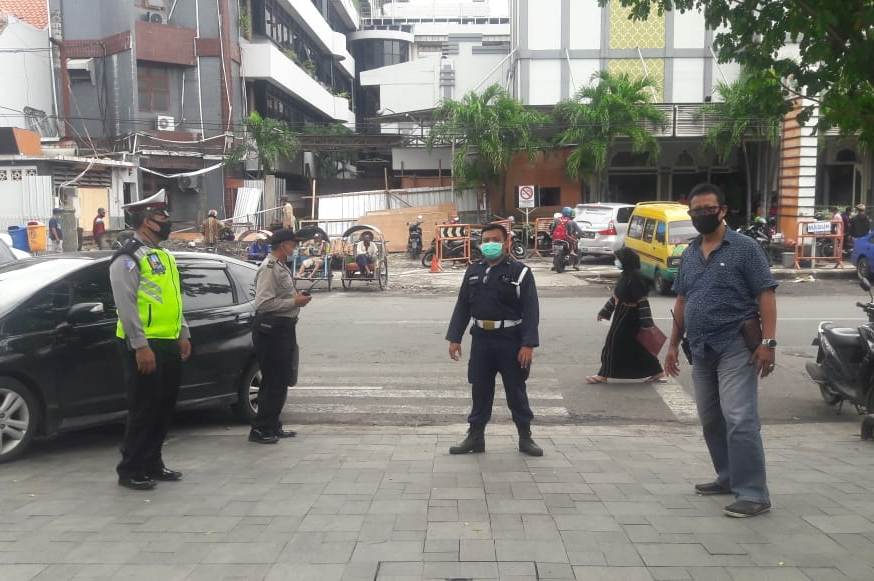 Seputarperak.com- Patroli dilakukan personil Polsek Pabean Cantikan, Polres Pelabuhan Tanjung Perak di Rumah Sakit Al Irsyad, Jalan KH Mas Mansyur, Selasa siang, 9 Pebruari 2021.