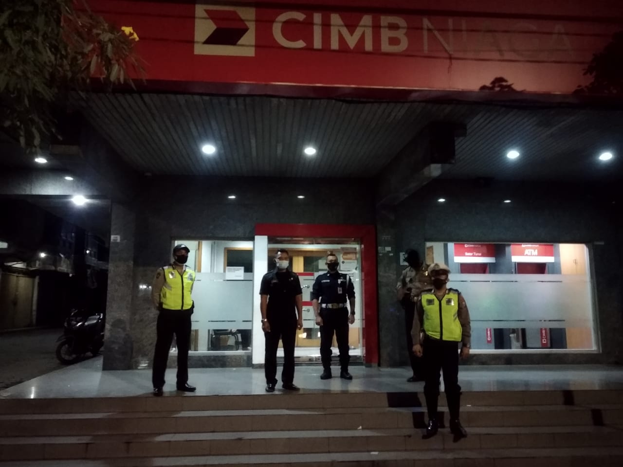 Seputarperak.com- Patroli dilakukan personil Polsek Pabean Cantikan, Polres Pelabuhan Tanjung Perak di kantor Bank CIMB Niaga, Jalan Kembang Jepun, Selasa malam, 9 Pebruari 2021.