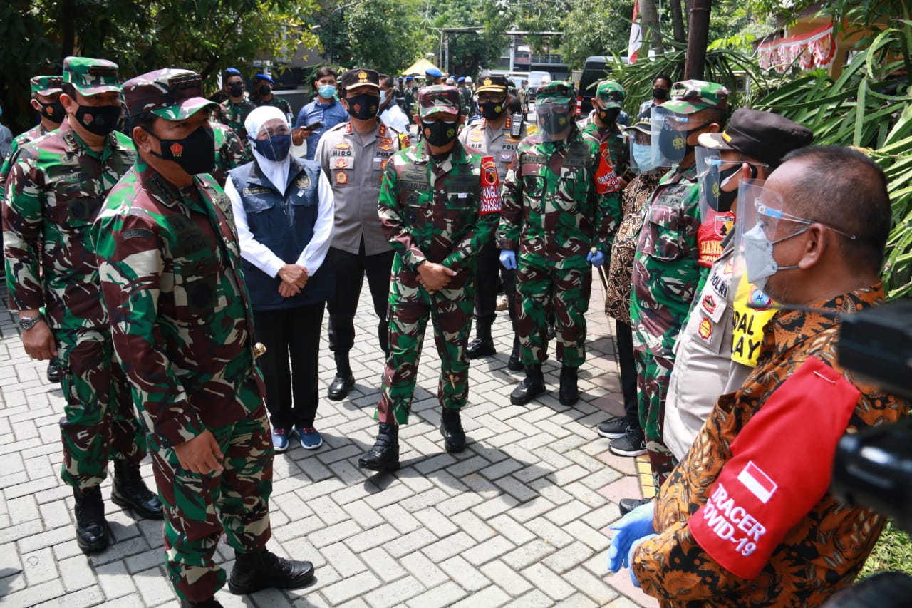Seputarperak.com- Forkopimda Jawa Timur, dampingi Panglima TNI Marsekal Hadi Tjahjanto, melakukan kunjungan kerja. Dalam rangka implementasi dari tenaga tracer di kelurahan Kedung Baruk, Kecamatan Rungkut, Surabaya. Pada Kamis (11/2/2021).