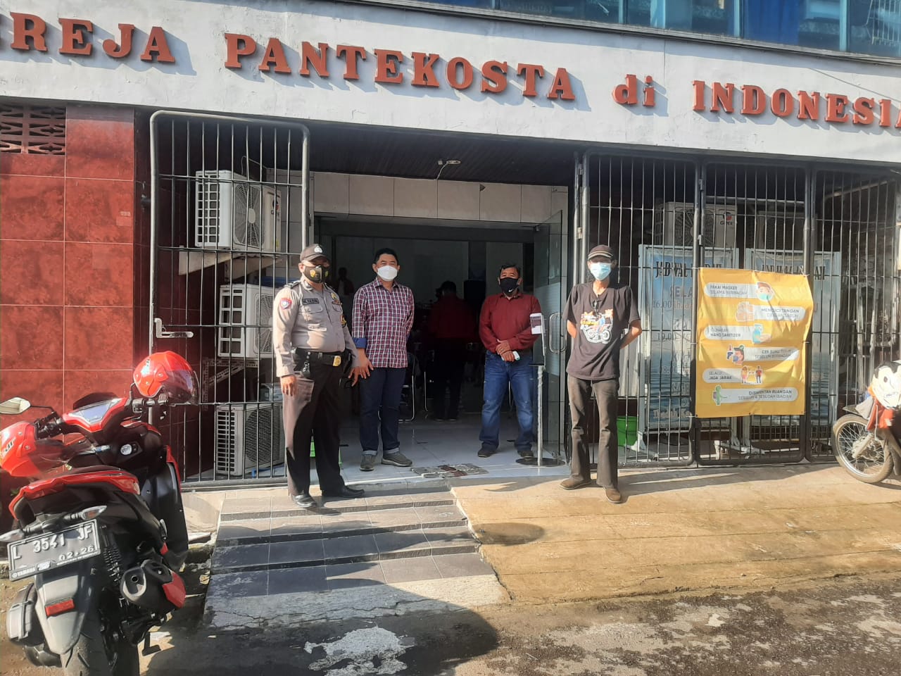 Seputarperak.com- Pengamanan kebaktian atau ibadah dilakukan Aiptu M Yasin, Babinkamtibmas Krembangan Utara, Polsek Pabean Cantikan, Polres Pelabuhan Tanjung Perak di Gereja Pantekosta, Jalan Layar, Minggu pagi, 14 Pebruari 2021.