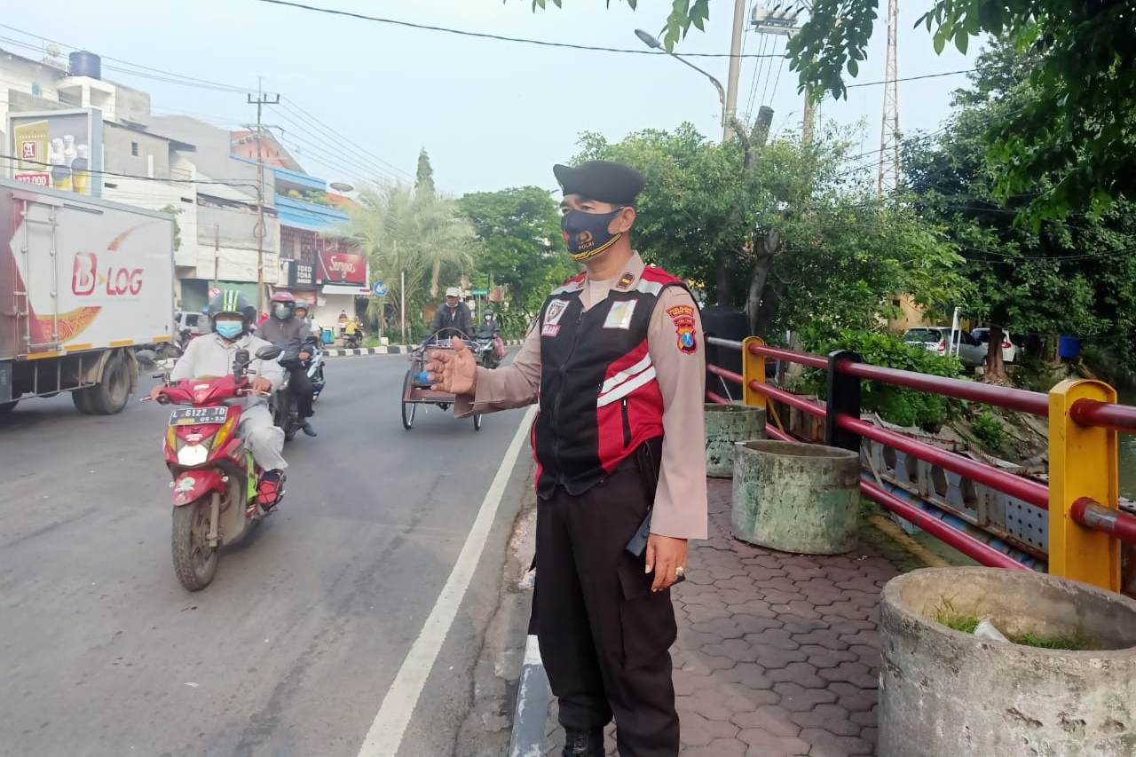 Seputarperak.com- Pengaturan lalu lintas pagi dilakukan personil Polsek Semampir, Polres Pelabuhan Tanjung Perak di perempatan Jalan Karang Tembok, Selasa, 16 Pebruari 2021.