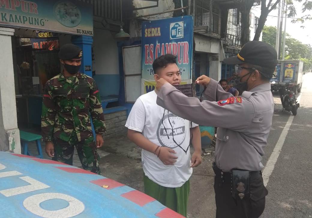 Saat itu selain membagikan masker personil Polsek Krembangan dan anggota Koramil juga memberikan sanksi kepada masyarakat yang kedapatan tidak menggunakan masker.