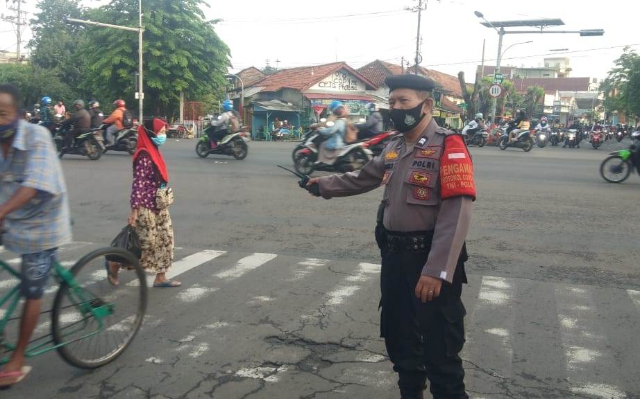 Seputarperak.com- Polsek Semampir, Polres Pelabuhan Tanjung Perak melaksanakan pengaturan lalu lintas rutin di Jalan Karang Tembok, Rabu pagi, 17 Pebruari 2021.