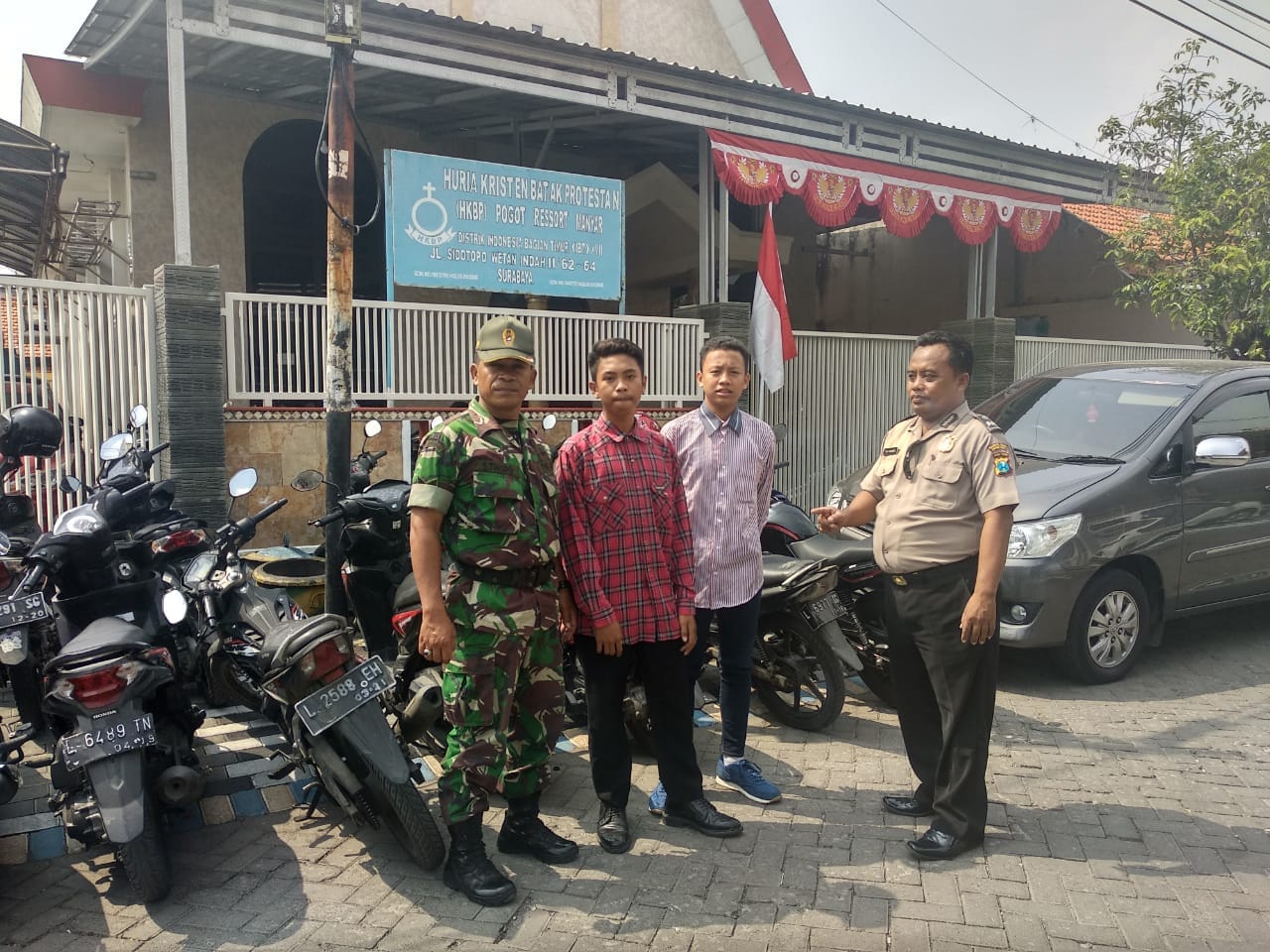 Seputarperak.com- Pengamanan gereja juga dilakukan Polsek Kenjeran, Polres Pelabuhan Tanjung Perak di gereja HKBP Jalan Sidotopo Wetan Indah, Minggu pagi, 2 September 2018.